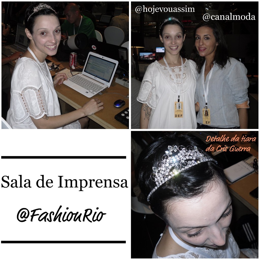 O make up, feito por Robert Estevão tinha os olhos bem puxados com delineador, que subia até o côncavo. No canto interno da pálpebra, sombra bronze, e no externo, verde. Cabelos presos como que num coque banana atrás e um super topete na frente.